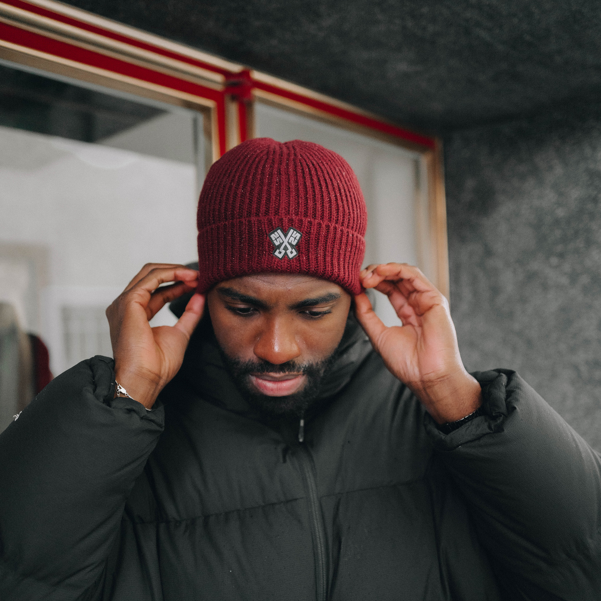 Beanie 'Keys' mit der neuen Version unseres Emblems der Stadtschlüssel Regensburgs als Aufnäher auf der Vorderseite der Mütze.