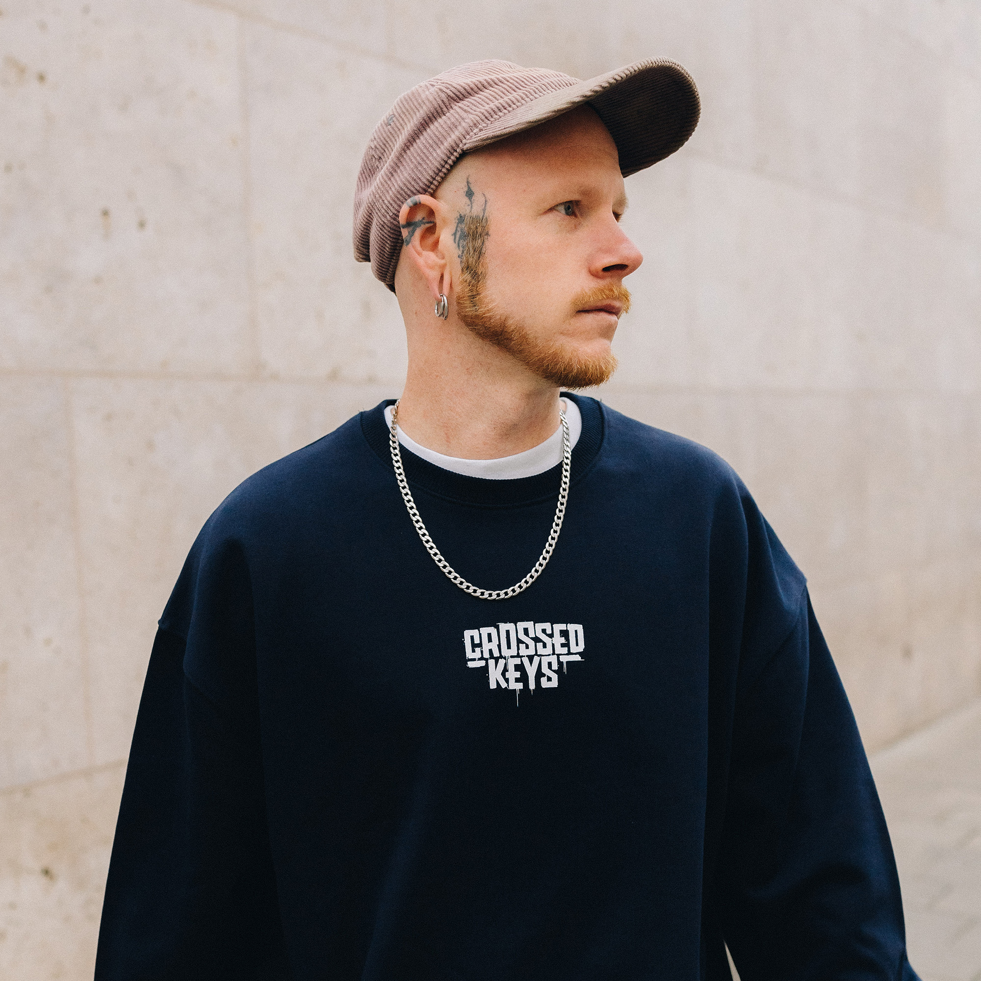 Unser Crewneck-Pullover 'Keys' in lockerer Passform. Dieser kommt mit einem großen, weißen Backprint unserer Stadtschlüssel im Graffiti-Style und einem dazu passenden, kleinen 'Crossed Keys'-Schriftzug auf der Brust. Erhältlich in unterschiedlichen Farbvarianten.