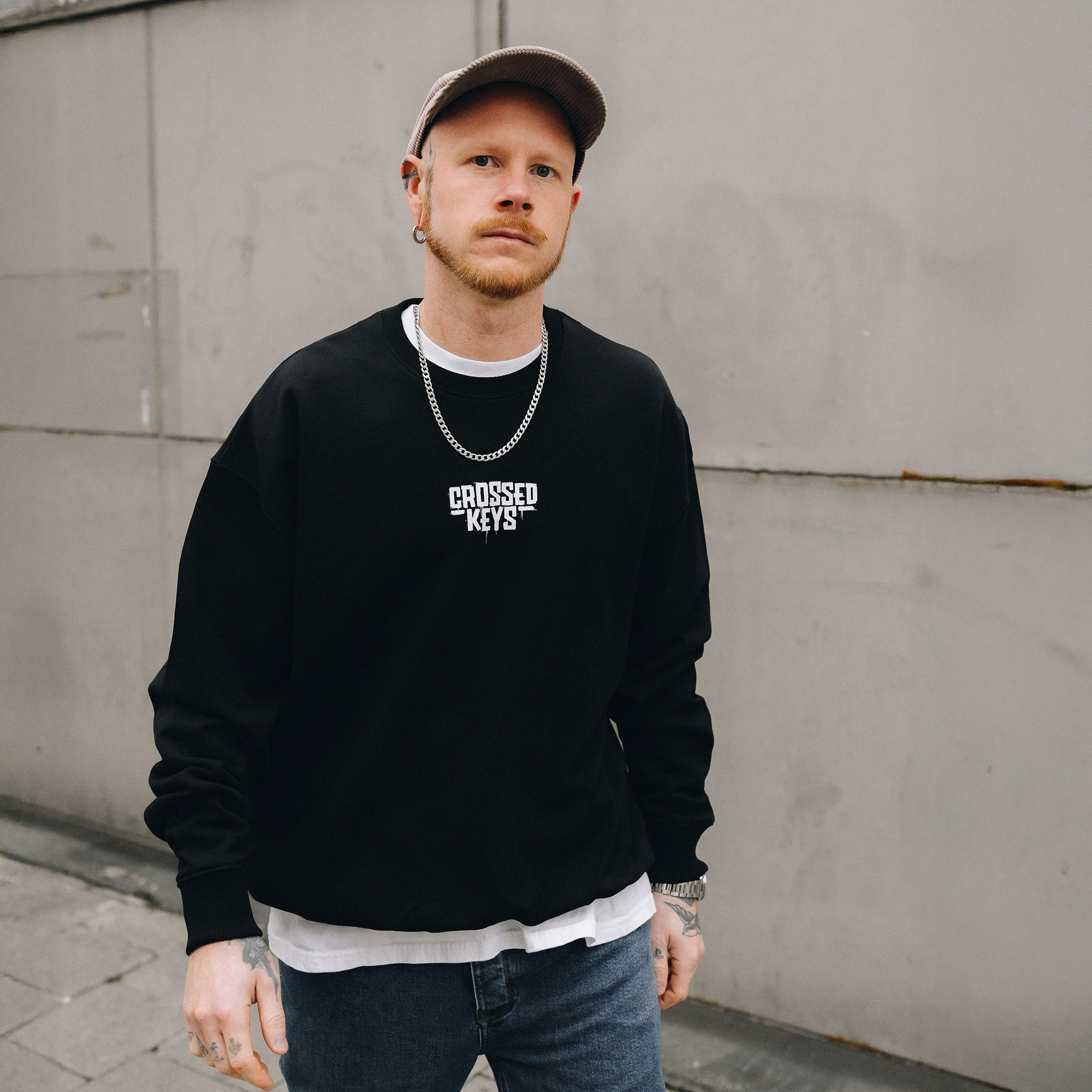 Unser Crewneck-Pullover 'Keys' in lockerer Passform. Dieser kommt mit einem großen, weißen Backprint unserer Stadtschlüssel im Graffiti-Style und einem dazu passenden, kleinen 'Crossed Keys'-Schriftzug auf der Brust. Erhältlich in unterschiedlichen Farbvarianten.